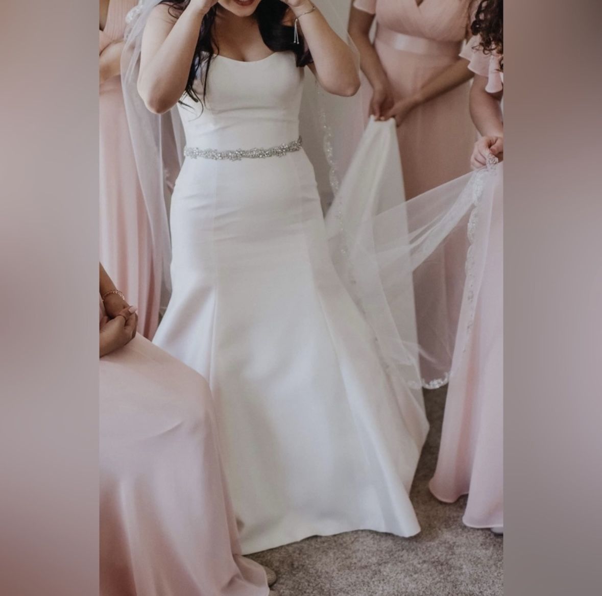 Timeless A-line/ trumpet silk dress. Unaltered size 10. Bustle added