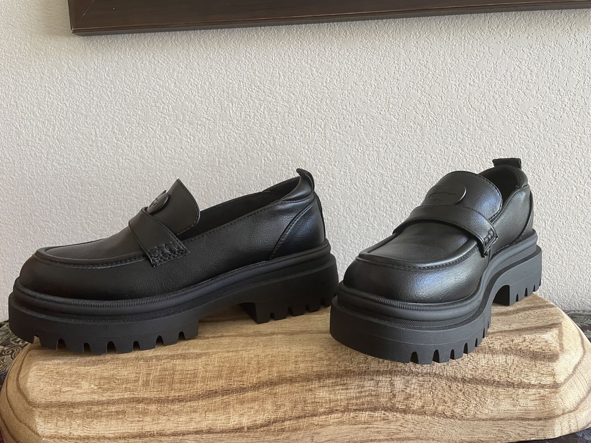 On trend. Cute and also timeless loader look. Dress them up and/or great with jeans. Never worn.