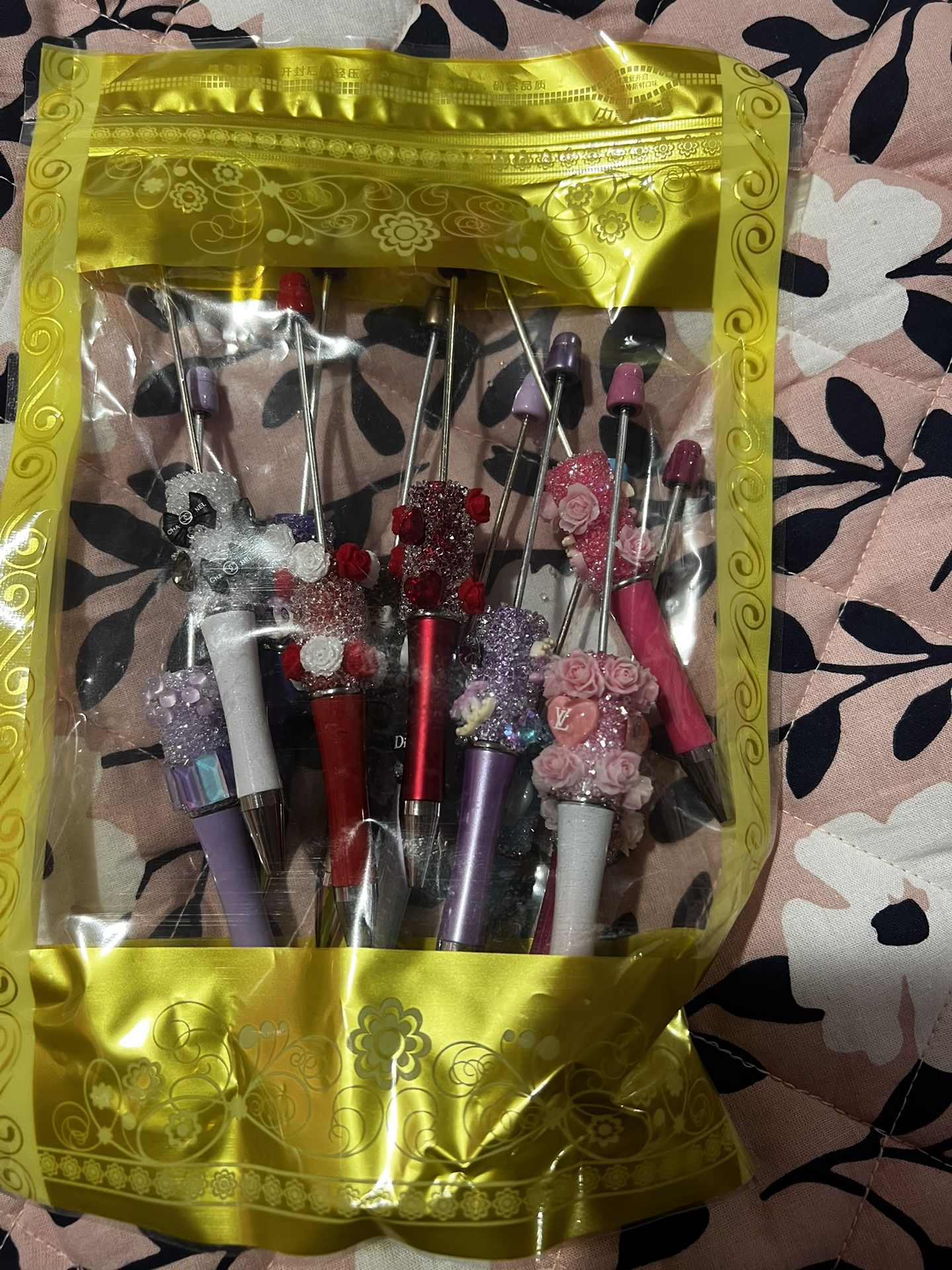 Cute custom made pens! Price ranges from $15 to $20…. Depending on the beads that are used. See images for pens made for my pervious customers. I have more in stock, let me know what you would like and send me a message!