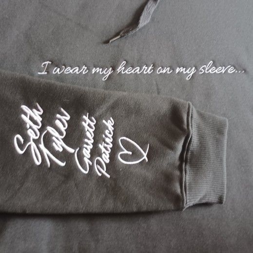 Custom embroidered sweaters/hoodies/crewnecks. Any design, logo, character, name and more. Available in various sizes and sweater colors. DM me for details.
