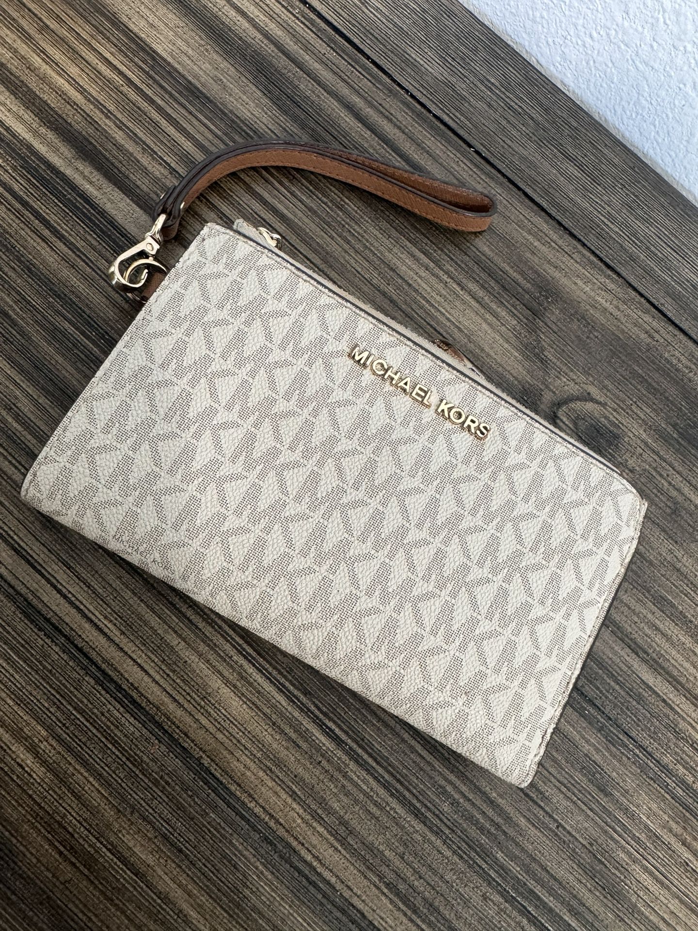 Clean, lots of storage, smartphone pocket, wristlet strap.