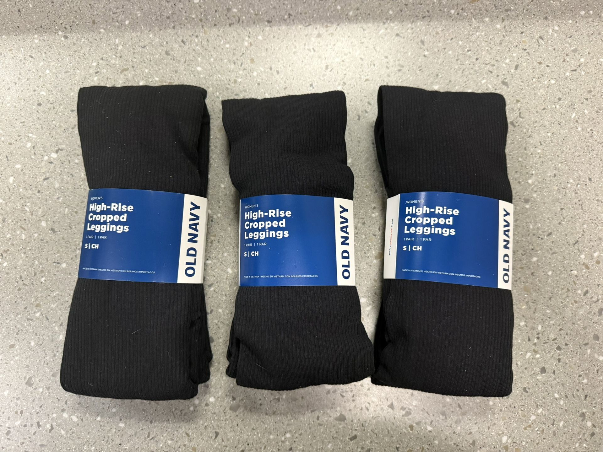 3 Pairs Old Navy Womens Black Rib High Waisted Jersey Cropped Leggings SMALL