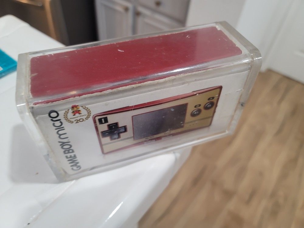 NINTENDO GAMEBOY MICRO 20TH ANNIVERSARY MARIO EDITION JAPAN IMPORT USA REGION COMPLETE IN THE BOX WITH MANUALS AND INSERTS AND CHARGER AS YOU CAN SEE SYSTEM IS IN EXCELLENT CONDITION BOX HAS WEAR REFER TO PICTURES ALSO INCLUDES A PLEXI GLASS CASE FOR IT I WANT 299$ FIRM PRICE PLEASE NO LESS AND IT'S PICK UP ONLY IN MORENO VALLEY THANKS
