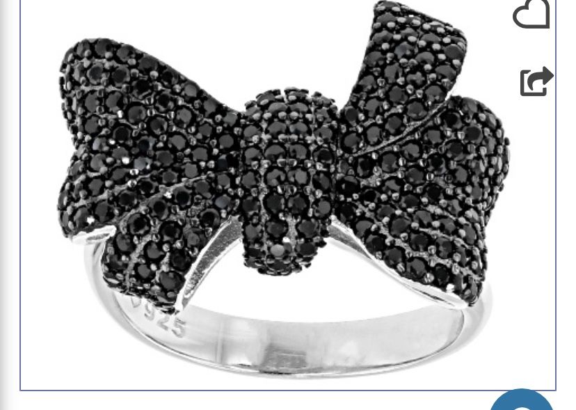 Black Spinel Rhodium Over Sterling Silver Bow Ring By JTV size 8