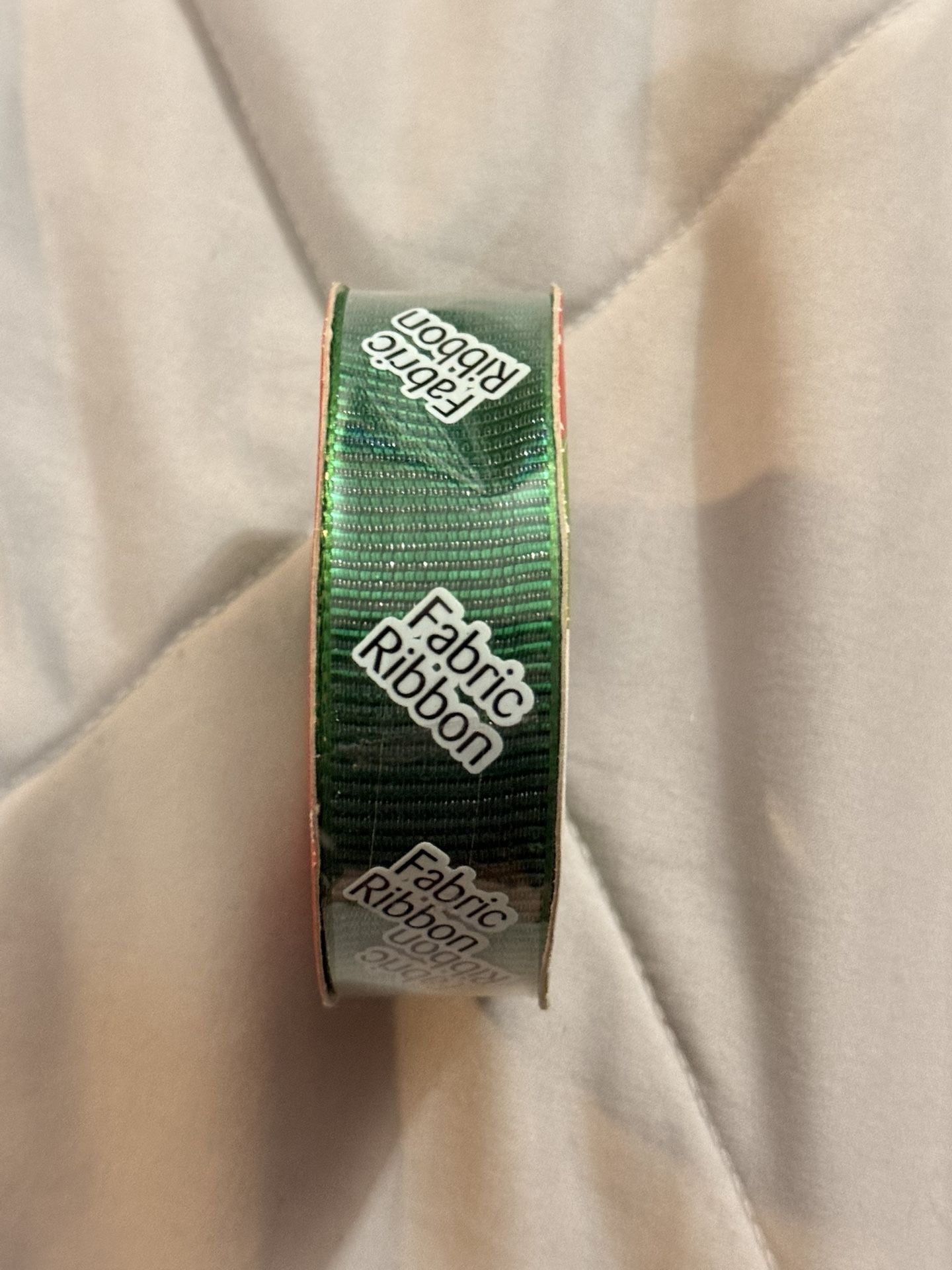Brand new. 9 feet length by 7/8 width. 67% polyester & 33% metallic. The ribbon is $1. I accept Cash, Apple Pay, & Venmo From a smoke free home Pick up only in Hemet No shipping, deliveries, or trades