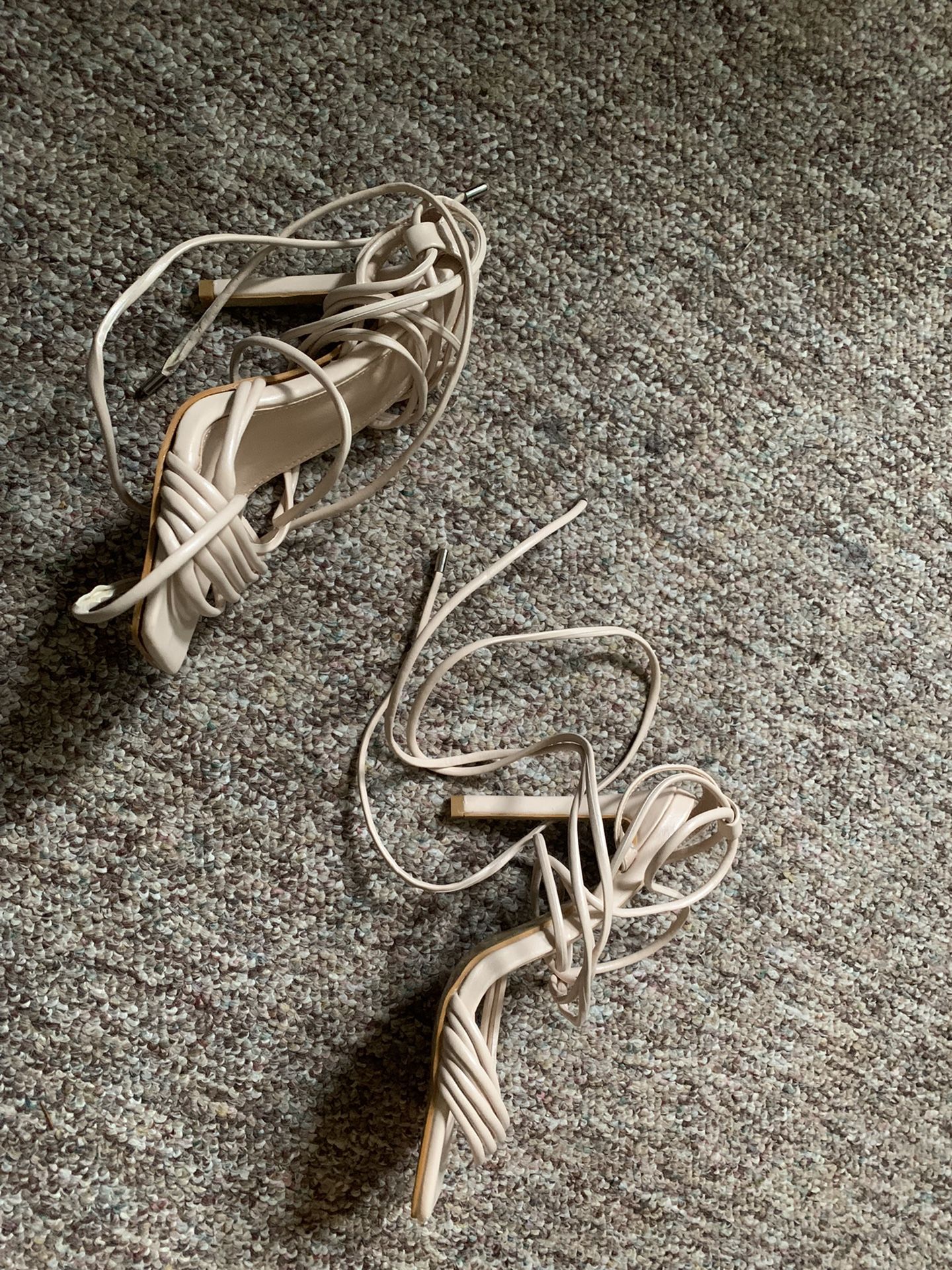 Size 7 Beige Leg Strap 3.5 Inch heels