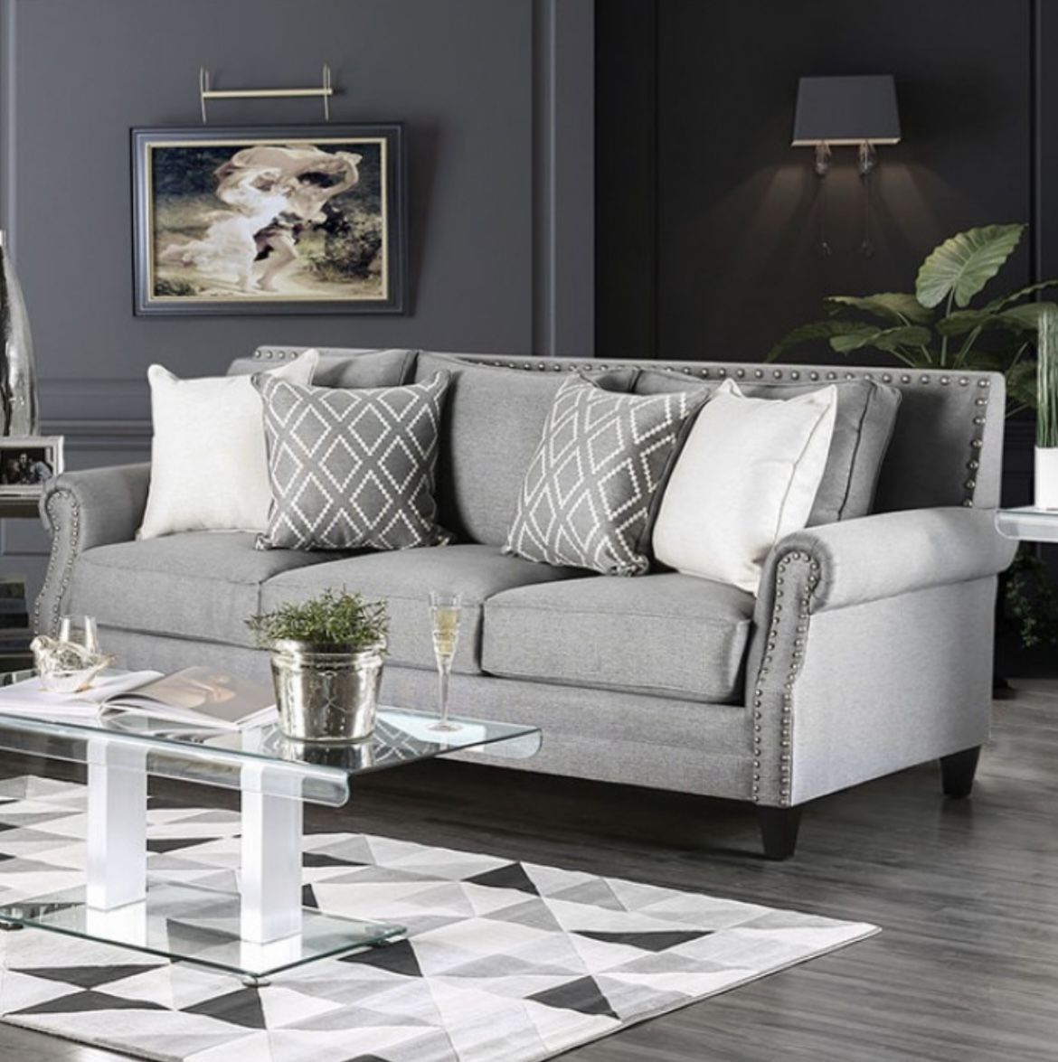 Gray Sofa with Accent Pillows