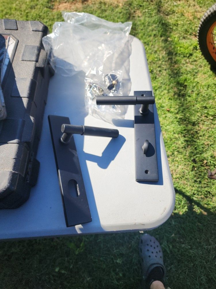 EMTEK door handles new,, 2 set Right hand non keyed Left hand keyed Matt black