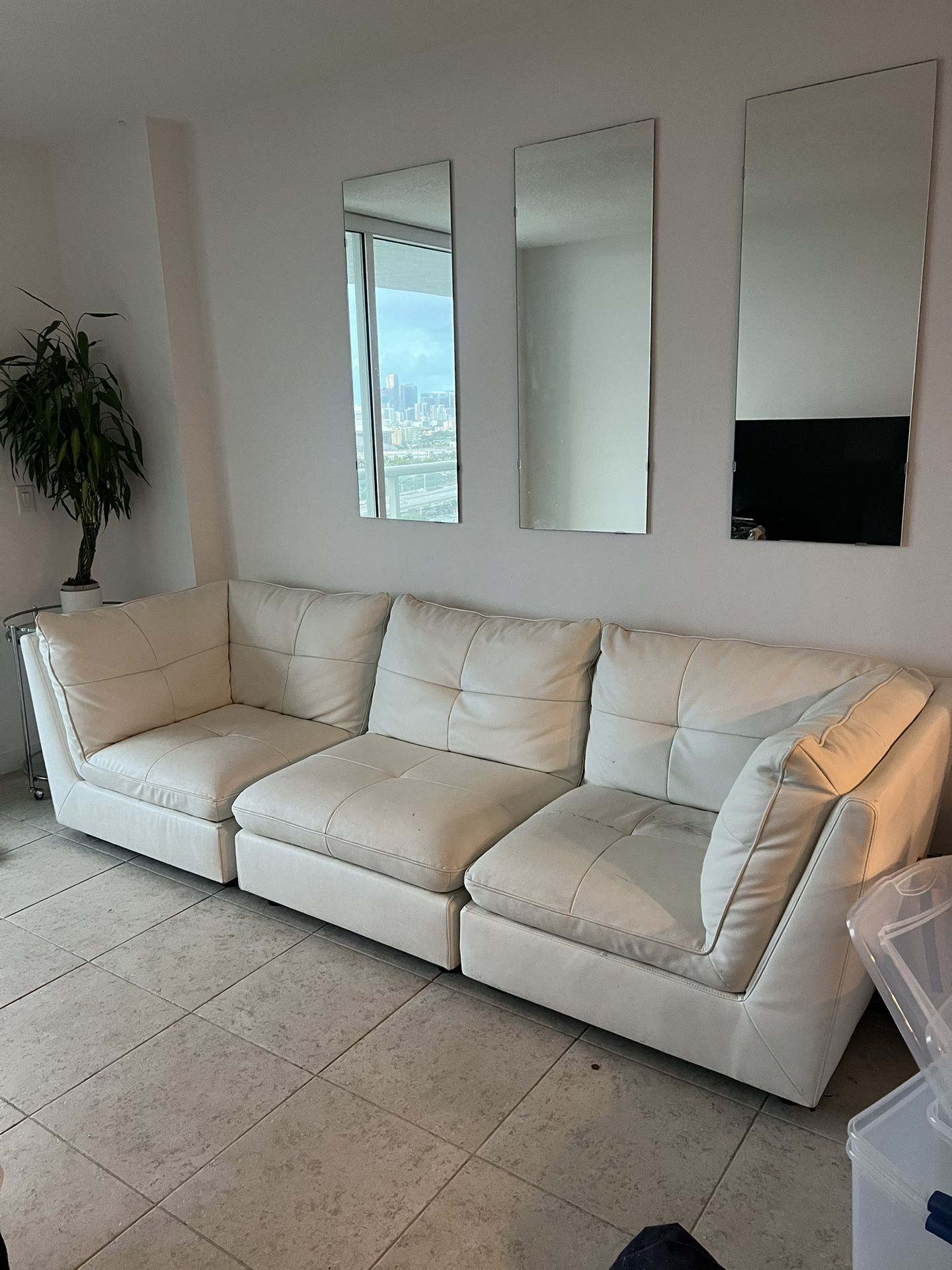 For sale. $200 white leather couch , durable. In normal condition. Small area with scratches.