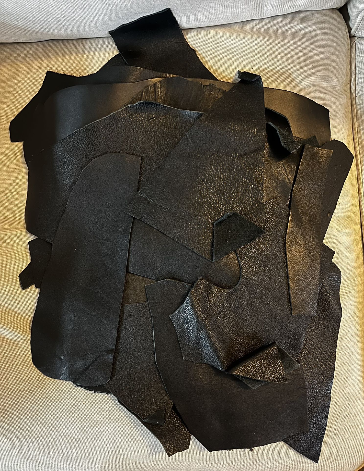 Genuine Black And Brown Leather Fabric Scraps.