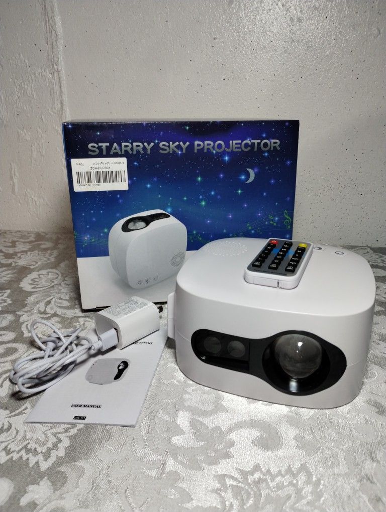Projects rotating water waves, colorful clouds, and starry sky effects to create a relaxing, ambient atmosphere. Features night light, timer, music, and meditation modes. Compact and energy-efficient, it consumes less than 8W and operates between 10°C–50°C. Safety notes: Class 3A lase — do not stare into the beam. Use only with the supplied transformer connected to a properly grounded outlet. Recommended usage is under 2 hours at a time. Make sure to check my other listings — I have more items available like clothes, jewelry, shoes, toys, and more! 🥰 [PICKUP & CASH ONLY! 🚘] Available any day — (weekdays or weekends) Open to offers! 💬