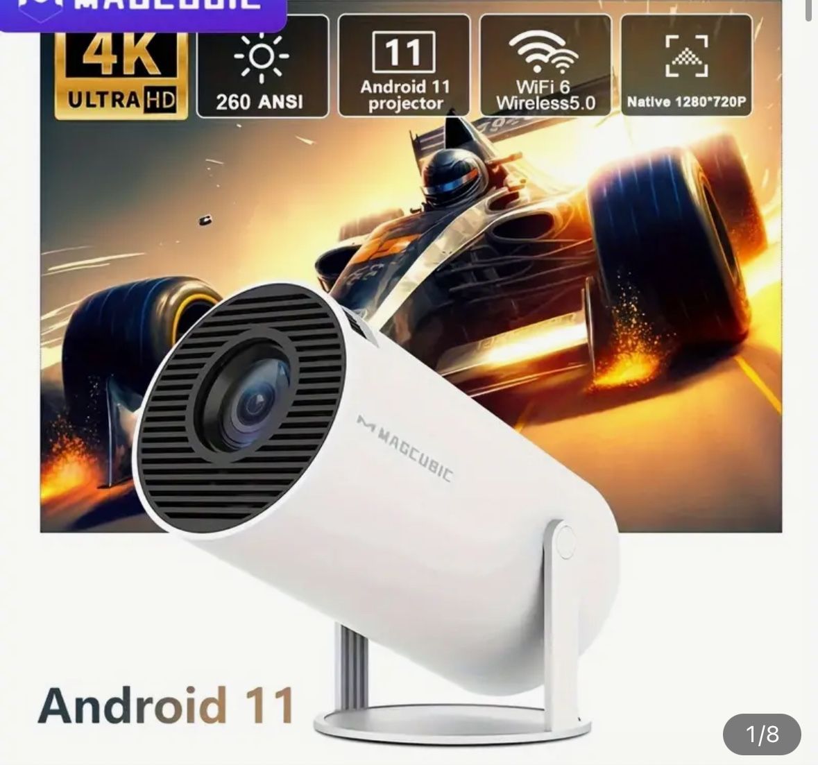 4K Portable Projector with WiFi6 + BT5.0, 160ANSI, Dual Wifi, 1280*720P, 5W HiFi Speaker, Allwinner H713 Quad-Core ARM Cortex-A53 - White