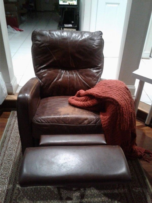 Genuine leather recliner chair for sale in a good codition. Smoke and pet free. Location is Great Falls, VA 22066