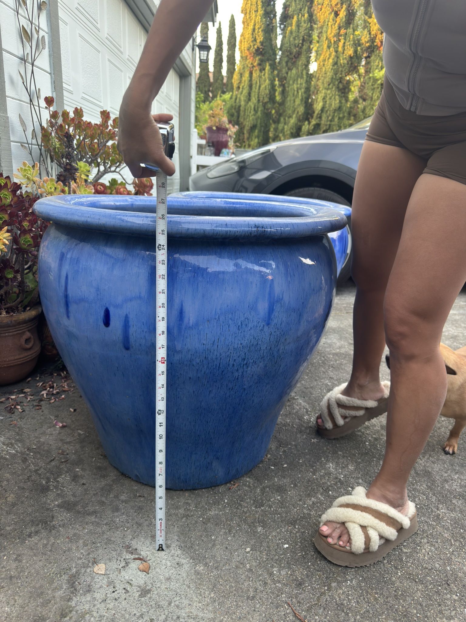 XL Blue Ceramic Planters (Set of 2) – 26” Tall Outdoor Pots