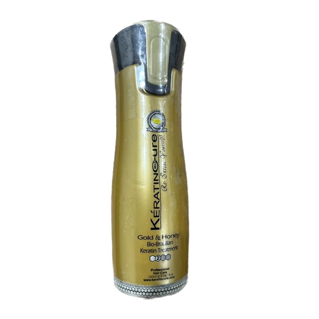0% formaldehyde, parabens, phthalates, sulfates, sodium chloride. Keratin Cure Gold & Honey Bio Protein Hair Treatment is an innovative Glycolic based Formaldehyde Free Smoothing Treatment. Repair, Rebuild, Rejuvenate and Smooth your clients’ hair with our exclusive treatment. We have combined the best nurturing and repairing essential oils into our treatment, to not just deliver smoothness but also help rebuild and repair over-processed and damaged hair. This product is for Professional Use only. Tips and Troubleshooting What to expect ! Do not over apply. Hair will be sticky and hard to manage if too much is applied . Please be advised this product was manufacturered and tested to have best results when applied by a hair professional. Beauty Cosmetica will not be held responsible for results performed at home. The treatment application may take 2 to 3 hours depending on your skill level hair length and type. If you are purchasing the treatment for yourself be prepared to have someone professional apply it for you. Self-application may be too difficult. Like any hair product results may vary based on hair type condition skill level of the operator quality of application tools and adherence to the manufacturer’s instruction. Due to the glycolic nature of this product, hair may lighten 2 degrees.