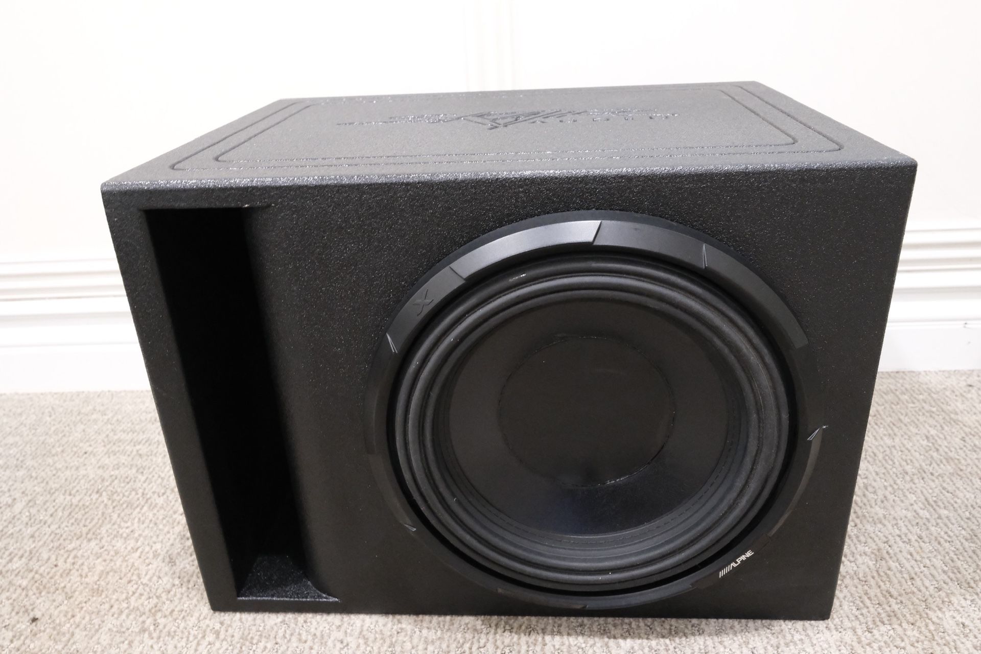 Alpine x-w12d4 12 in subwoofer with skar audio ported box. This subwoofer can handle 900 WATTS RMS continuous power! I was using a 600 watt amp and it sounded incredible. This subwoofer hits like a beast. Very musical subwoofer, will handle all kinds of genres like a breeze. Comes with a skar audio box that looks and sounds great. Also pretty compact box so can easily fit in any trunk with space to spare. No issues just don’t have a need for it anymore. The Dust cap ended falling off but I took it to my my speaker shop and had it repaired. Contact me if you have any questions. Will gladly test it for you if you’re interested.
