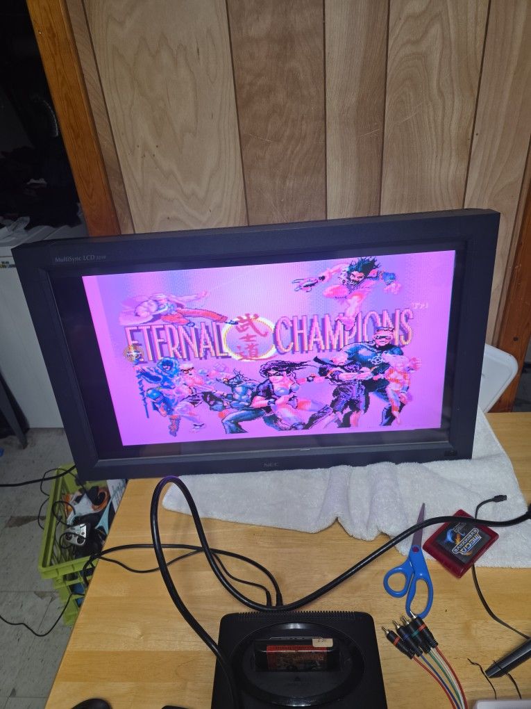 15khz compatible. Open to trades. It works great but it has a pink hue in thr picture because I dont have an rgb compatible source.