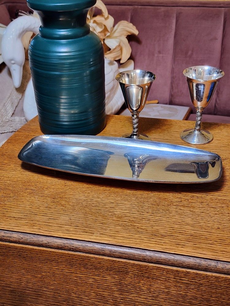 Pretty with modern lines and foot style Wallace brand silver plated bread tray. Measures 13.75x5.25"