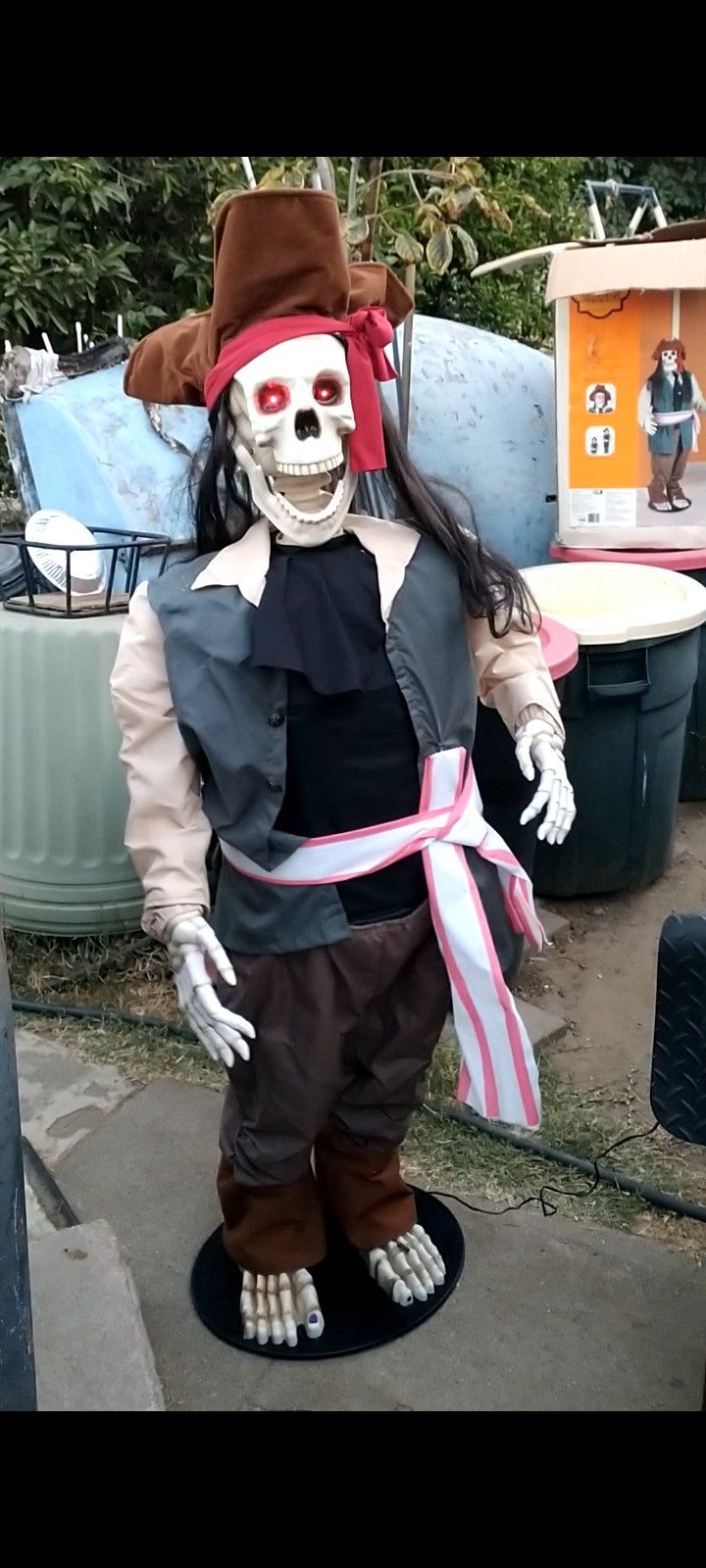 Gemmy animated pirate skeleton w/original box complete works good. This app doesn't allow videos to be posted or I would show it in working condition