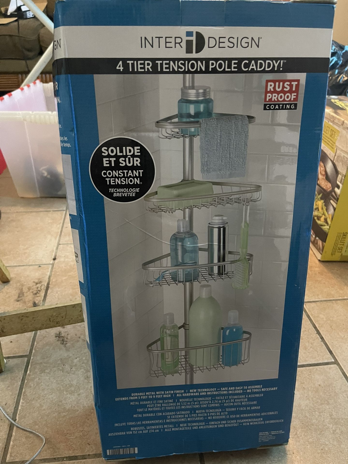Hi, I have a brand new . InterDesign York Tension-Pole Caddy in Powder Coated Silver! ( 4-Tier) This item is brand spanking new. Never opened. Never used. I can meet you at the Elgin police station, Hanover Park police station, or Streamwood police station or Bartlett police station. I can also ship this item to you as well for a small shipping fee. Thanks and make it a great day.