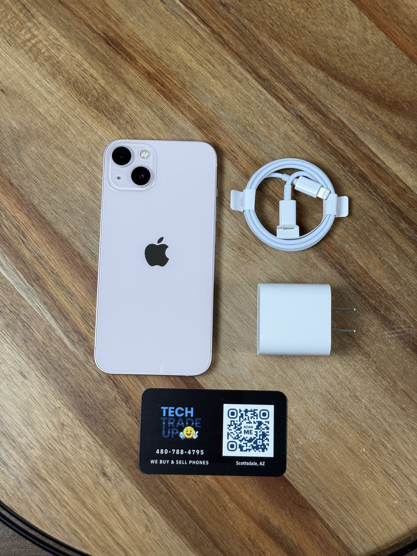 Unlocked 15 day warranty with TechTradeUp 8/10 condition 87% battery health Comes with charger No issues at all All parts original (Pink) 128Gb Finance options available Same day delivery services available ($20-$30) depending on location Military discount ($10) **Cash for best price** Zelle, Cash-app, Venmo, Apple Pay Card payment will include taxes through SQUARE (ID required with matching card) Cases and screen protectors bundle available for $25 Apple fast charging bricks available for $10