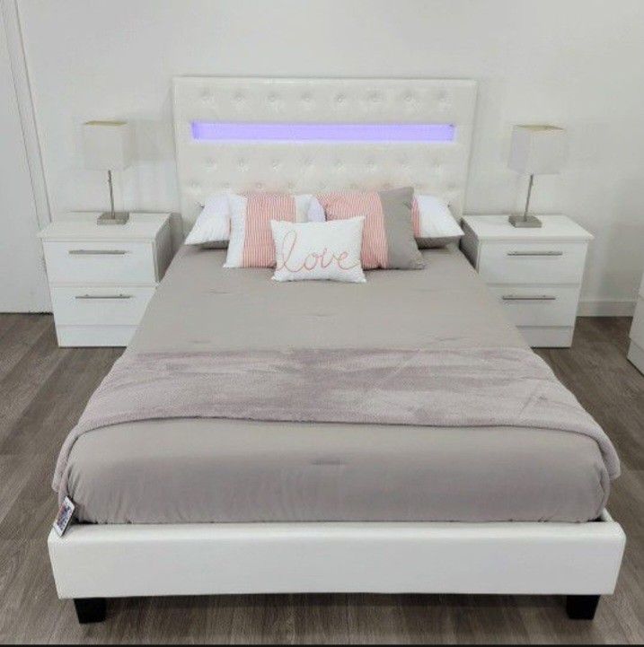 QUEEN SIZE BED AND TWO NIGHTSTANDS ( MATTRESS NOT INCLUDED)