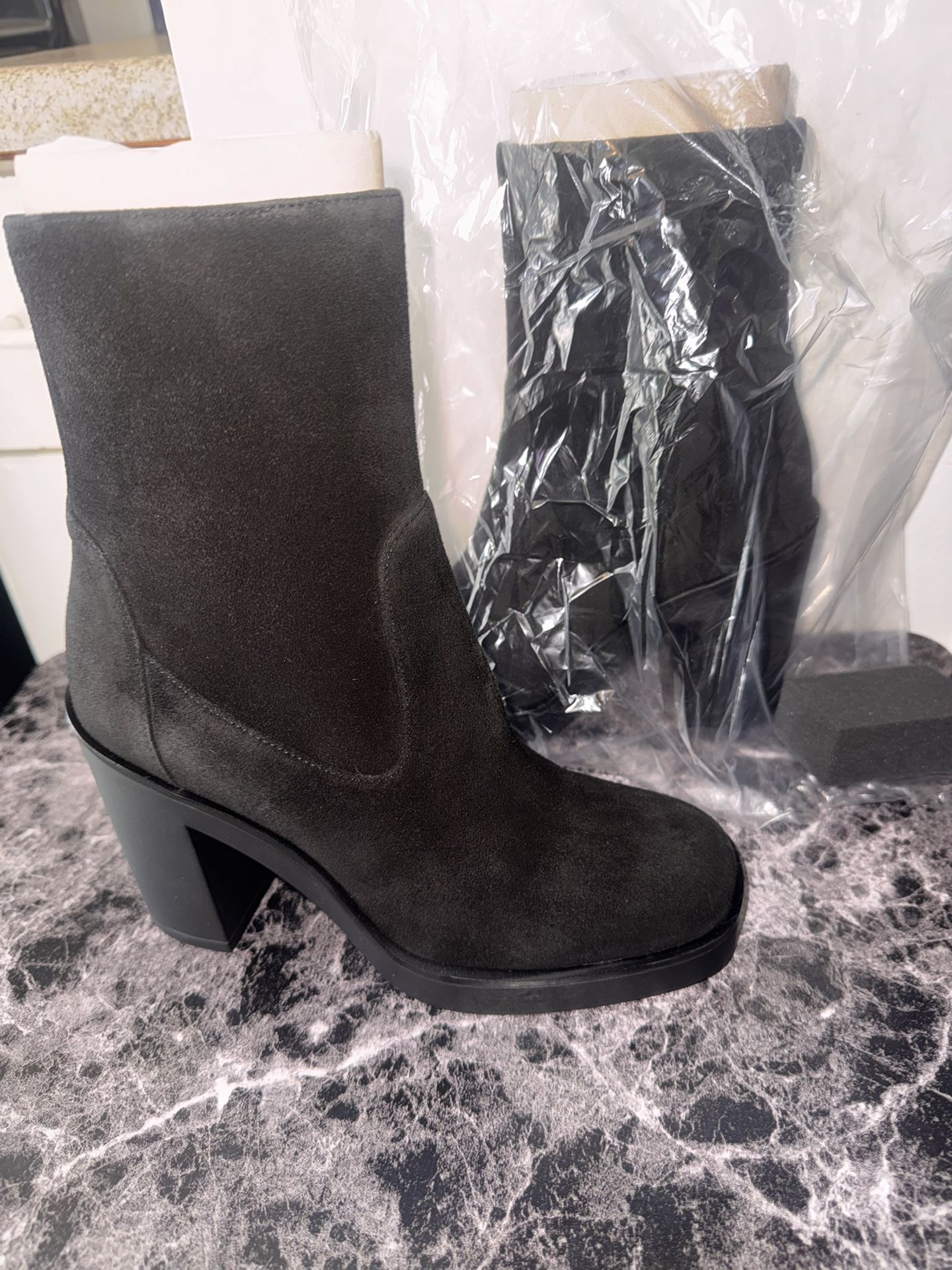Stuart Wietzman Bethenny 80 Zip Bootie Black Suede (5B)