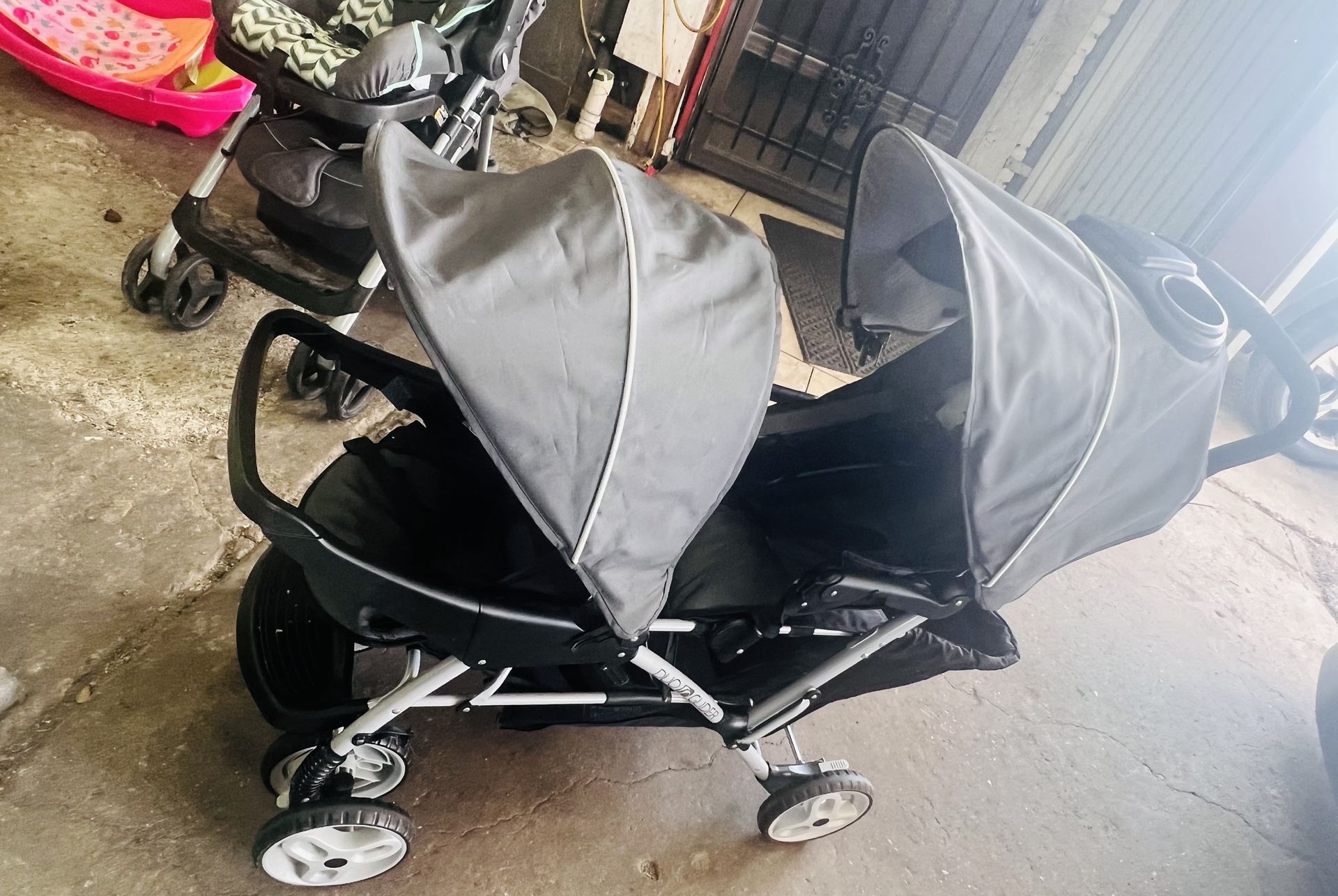 Dos carriolas para bebés. Una para gemelos o hermanitos semi nueva. Amazon $205.05 más taxas La doy a $80.00 Otra para un solo bebe usada en buenas condiciones con el car sit precio $ 50.00