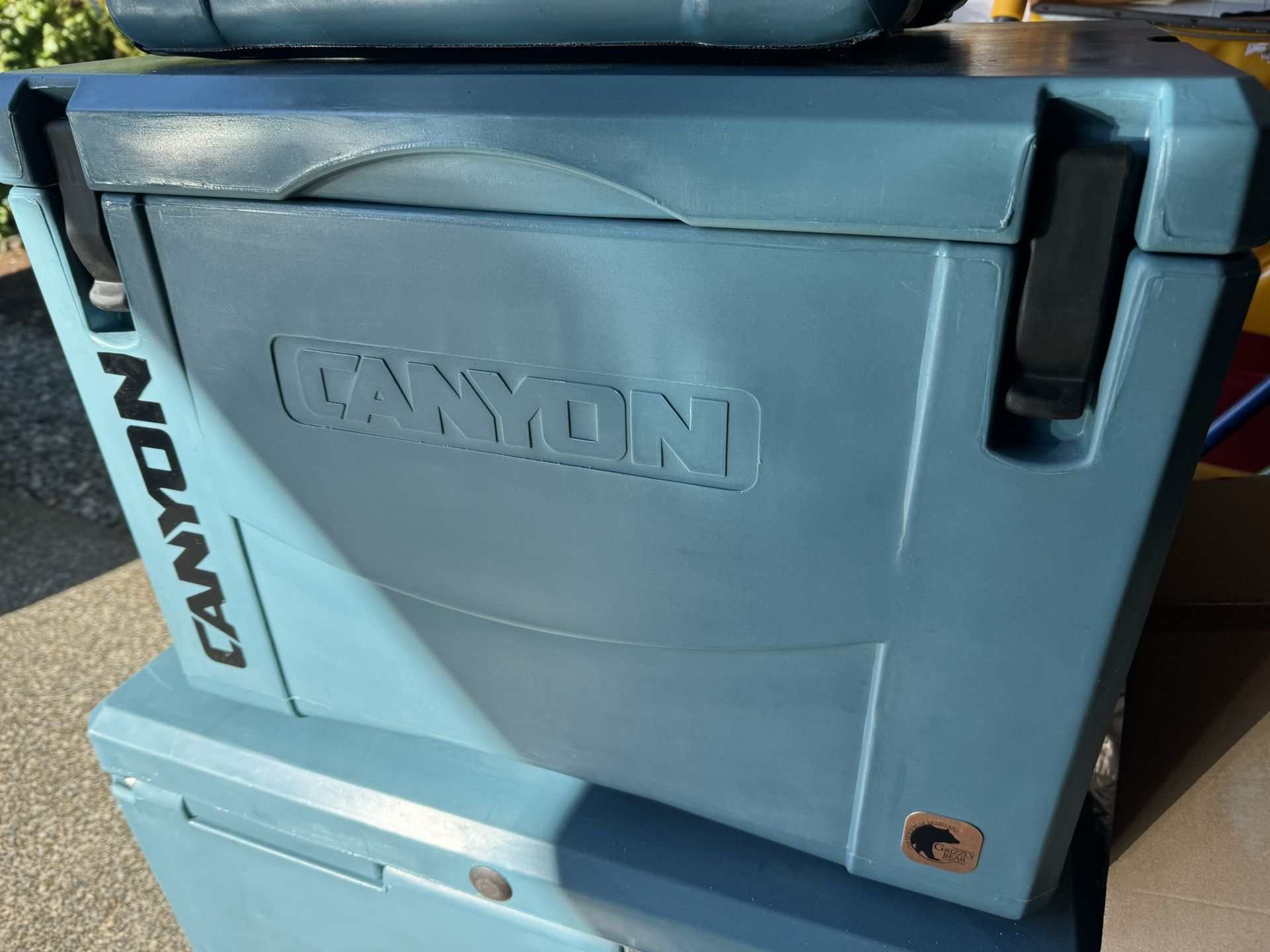 I have two canyon coolers in the 35 size. They are in the Mayan blue. Barely used so they are in good shape.