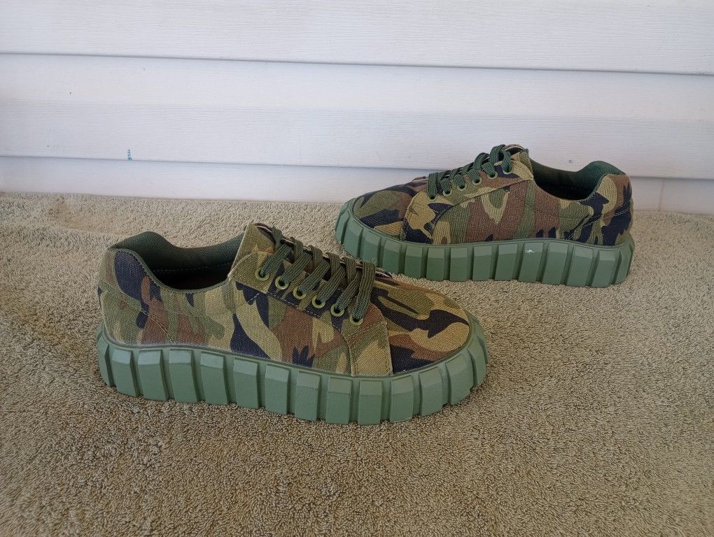 Women's Camouflage Thick Bottom Sneakers, Lace-Up Casual Shoes size 9. In good condition has no rips or tears needs a little cleaning see all pictures for more details.