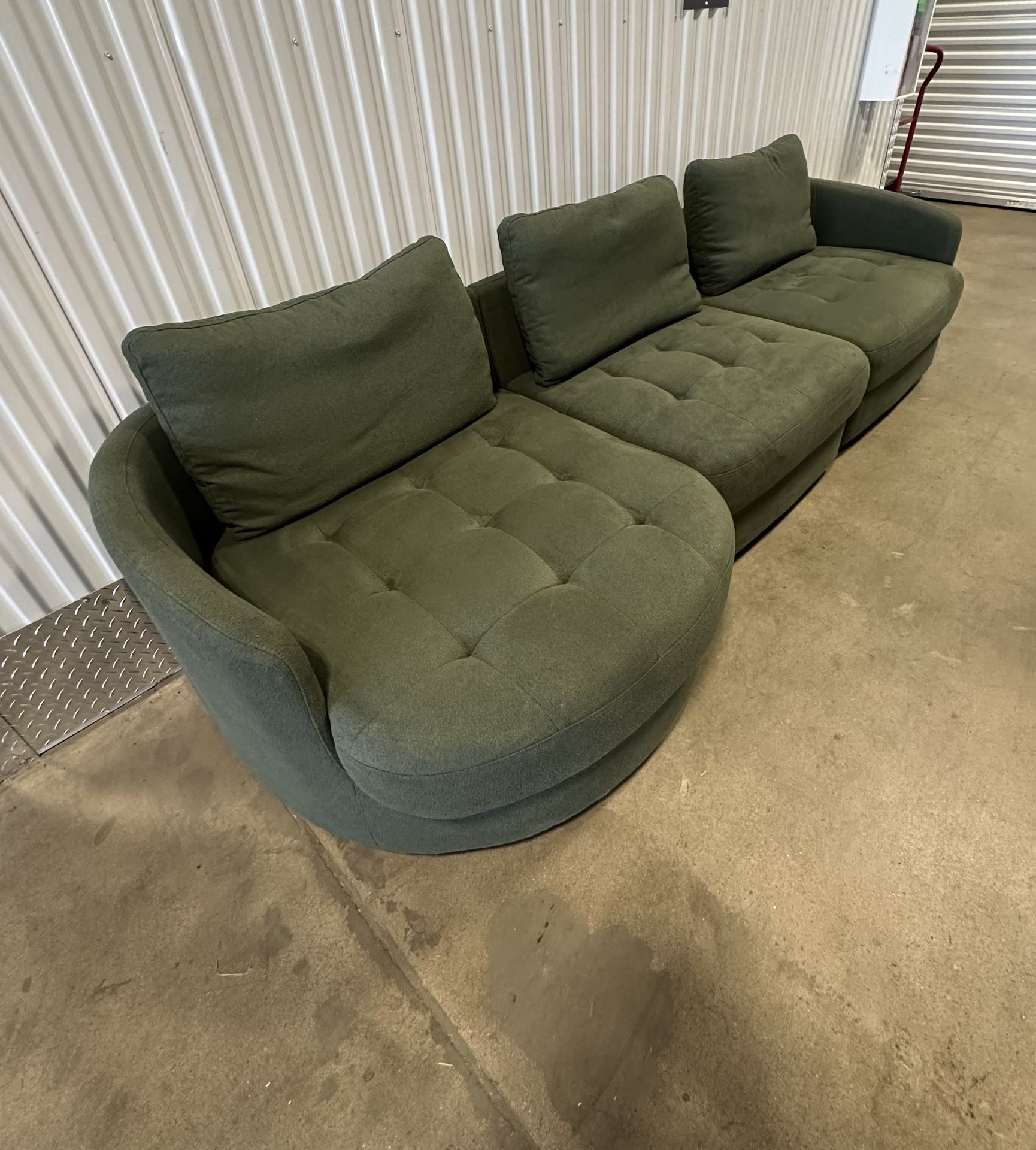 Retails for $3700+, asking $750 OBO Link: https://www.amazon.com/TIMERAGE-Compatible-Apartment-Furniture-GG-U8/dp/B0D3WKXCJX?th=1&psc=1 🛋️ Smooth, sculptural silhouette with rounded arms and deep tufted seats 🧵 Durable textured upholstery in a rich, earthy green tone 🧩 Three individual pieces for flexible arrangement – lounge-style or classic setup 🧼 Minor staining on one cushion (see close-up video). There is a small tear on one of the seat cushions that has been sewn up. It’s located on the back edge, so it’s not visible when the cushion is in place. The repair is secure and doesn’t affect comfort or function. 🚚 Local delivery available in Denver area