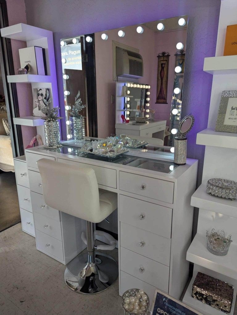 ✅Vanity desk with 11 drawers, glass top , 😍 ✅Dimensions desk : 48”W x 36”H x 16”Depth ✅ mirror with Bluetooth ❌Chair does not include SNAP FINANCE 🤩🤩 ⬇️FINANCING AVAILABLE 😍😍😍😍😍 💎WE FINANCE WITH 100 DAYS PAYOFF ⚠️TAKE IT TODAY⚠️ 👎🏽NO CREDIT or BAD CREDIT , NO PROBLEM ✅ID REQUIRED✅ 🚚FREE LOCAL DILIVERY🚚
