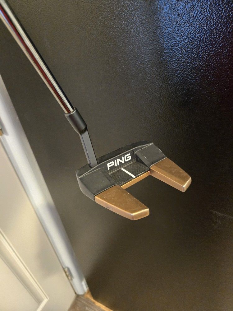Grip allows for Adjustable length from 32 to 36. It is currently set at 36. Condition is very good with minor paint chipping. Lot of life left in grip. Face is flat and clean with no dings. Does not come with a head cover.