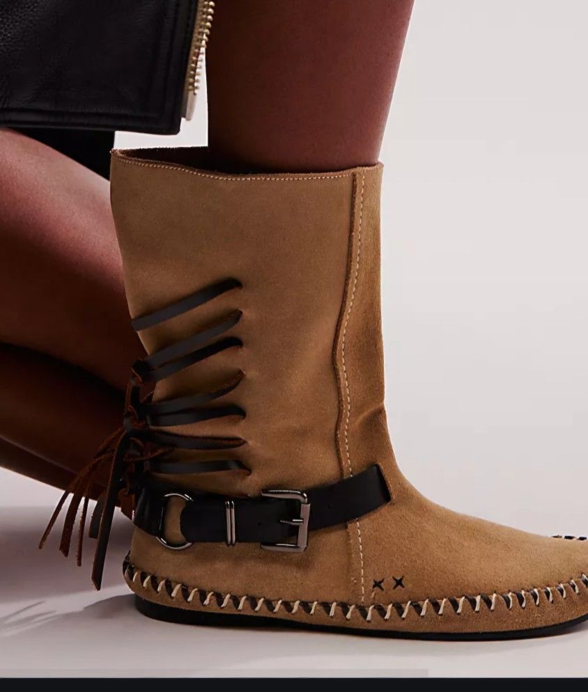 New Free People Leather Artisian Made Mocc Boots Women's Size 11