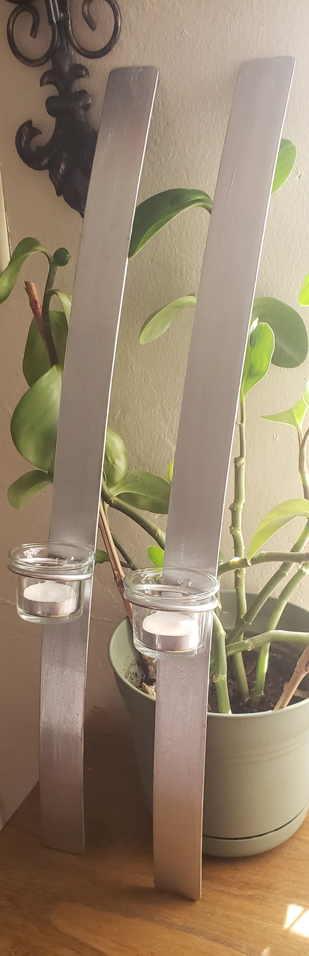 Wall decor Light weight Set of 2 24 in. tall Silver Tea cups and candles included Pick up only