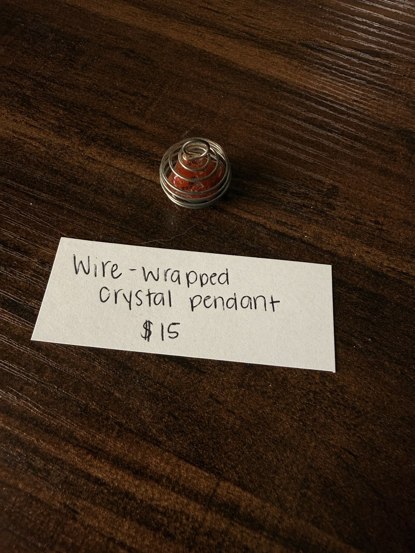 Handmade wire-wrapped crystal pendant featuring a warm-toned stone with natural variations. The crystal is securely encased in a silver-tone wire cage, making it perfect for wearing on a chain, cord, or adding to a charm collection. ✨ Great for: • Crystal lovers • Witchy / spiritual jewelry • Everyday wear or gifting 📏 Size: Small, lightweight pendant (see photos for scale) 📸 You will receive the exact piece shown 💲 Price: $15 (firm or OBO if you want flexibility) 📍 Porch pickup – Princeton or can ship for a small fee! 💵 Cash or approved digital payment Message me if you’re interested or want to bundle with other crystal listings!