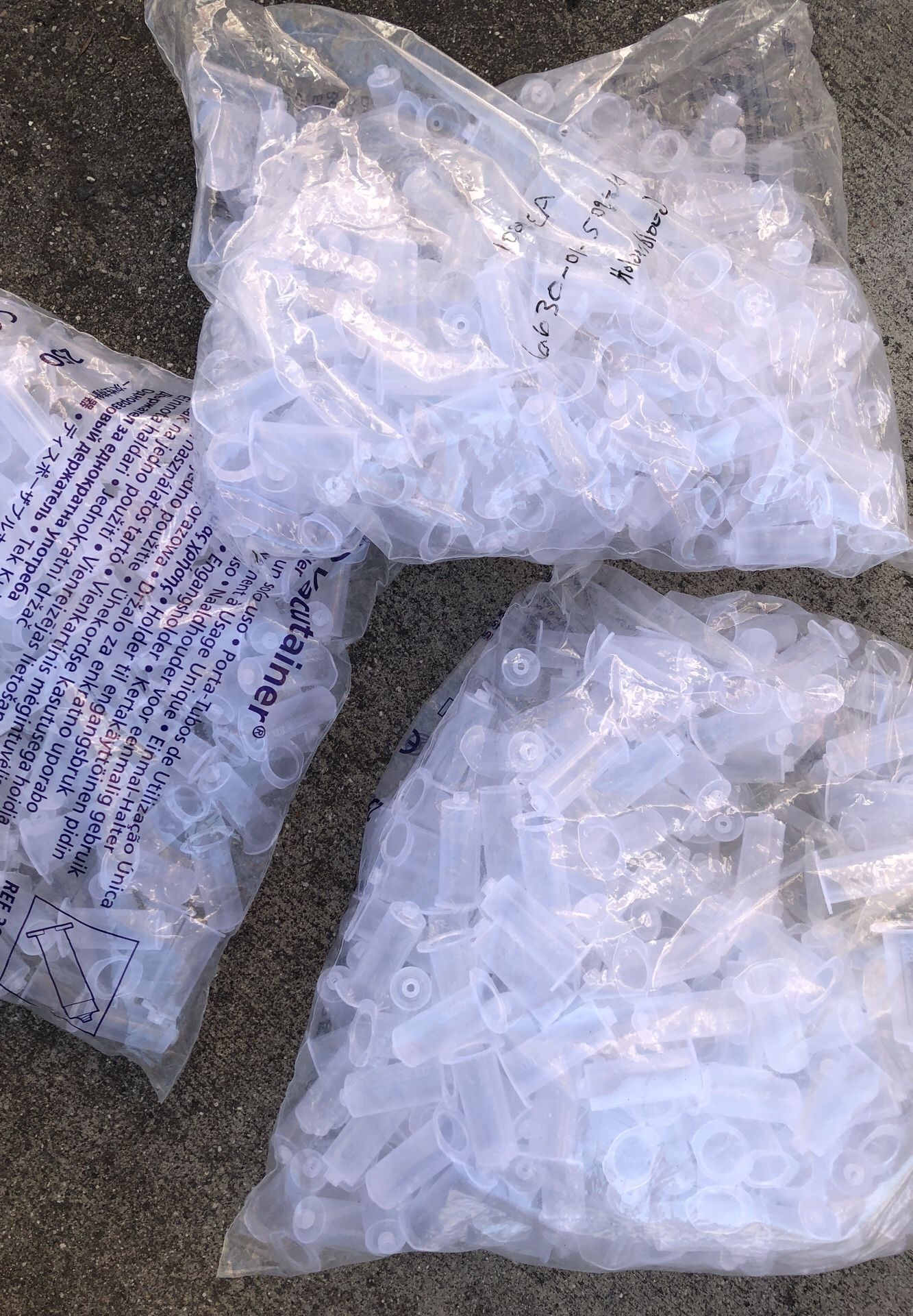 Three brand new Bags of blood vials