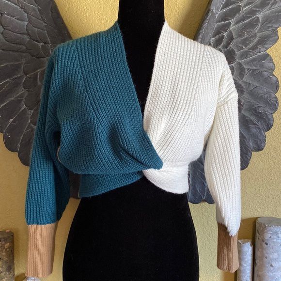 "Gently used condition Mixed colours Size medium or size 6 Crop style Vneck with twist at front Underarm to underarm 19-20” Length 16.5”"