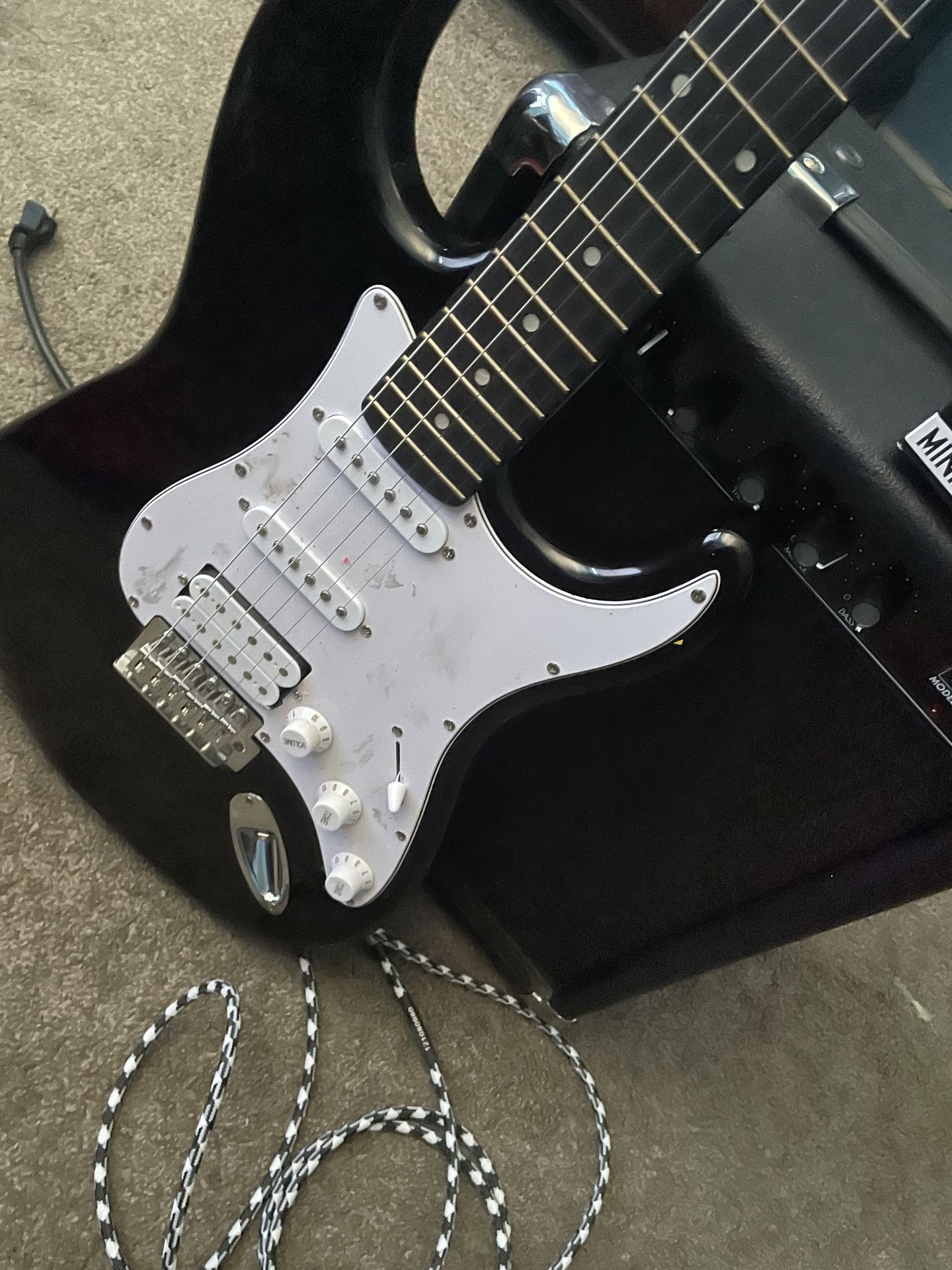 Electric guitar with 2 amps and cable