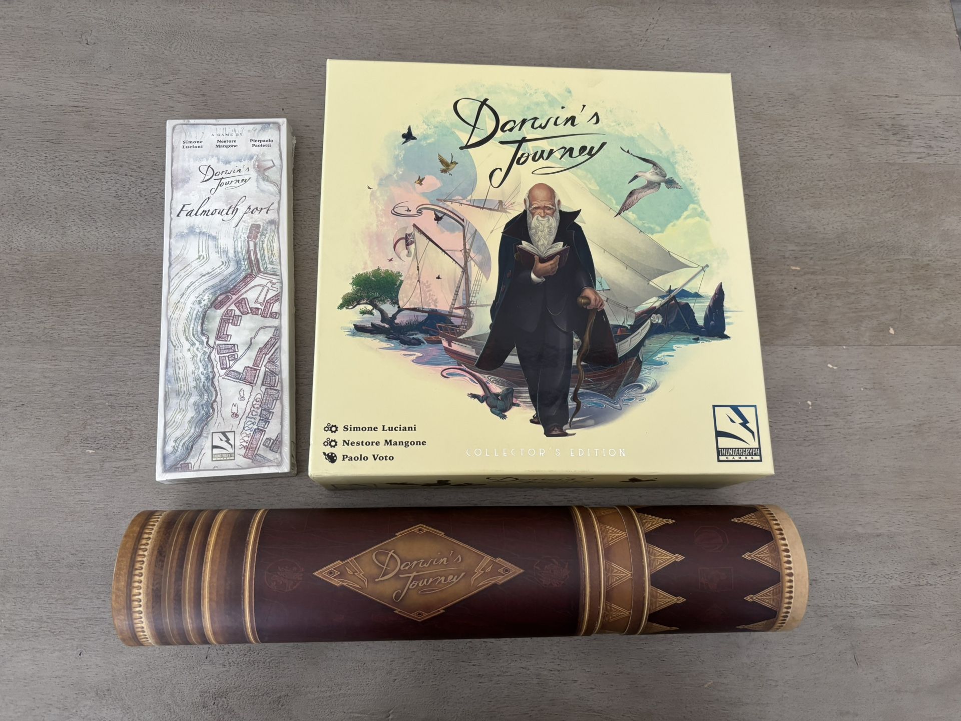 This is the Collector’s Edition of Darwin’s Journey, the highly acclaimed worker placement game designed by Simone Luciani and Nestore Mangone, and published by Thundergryph Games. This edition was only available through Kickstarter and includes premium upgraded components, exclusive content, and a complete expansion, all in one deluxe package. Condition Details: • Opened carefully to check for completeness. • Never played, but organized. • All cards sleeved-ready from the start • Stored in a smoke-free home. • All components bagged or still sealed in original wrap where applicable.