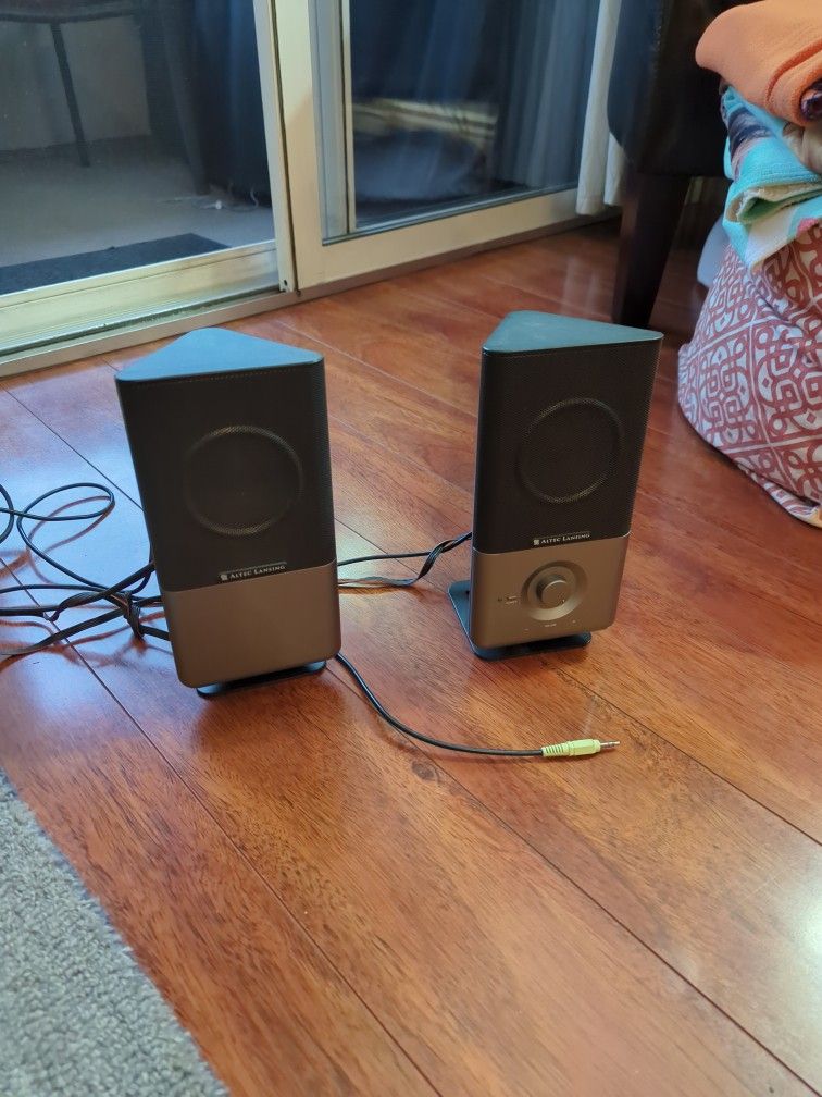 Like new Altec Lansing wired speakers, connected with headphone jack and power outlet