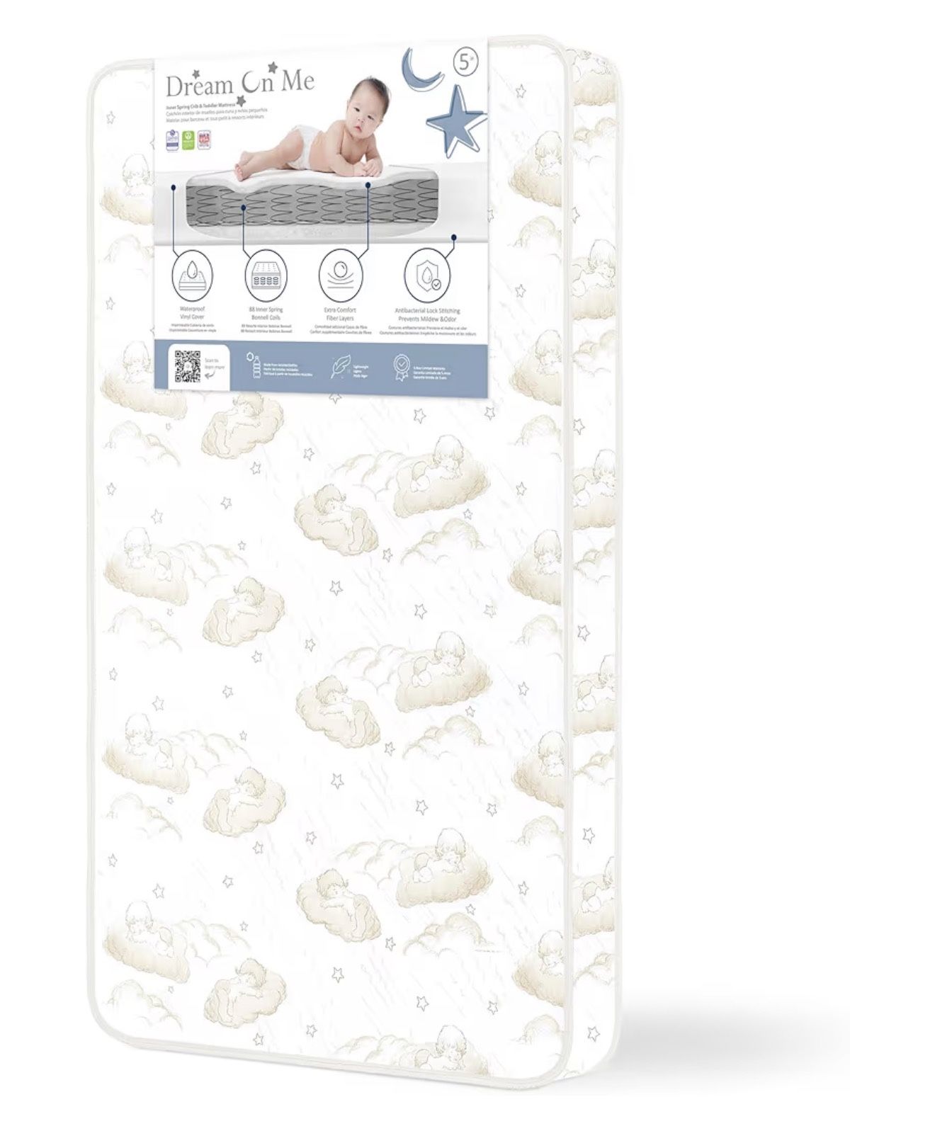 Dream On Me Twilight 5” 88 Coil Inner Spring Crib & Toddler Mattress – Brown Cloud, Greenguard Gold & BSA Certified, Waterproof & Stain-Resistant Cove
