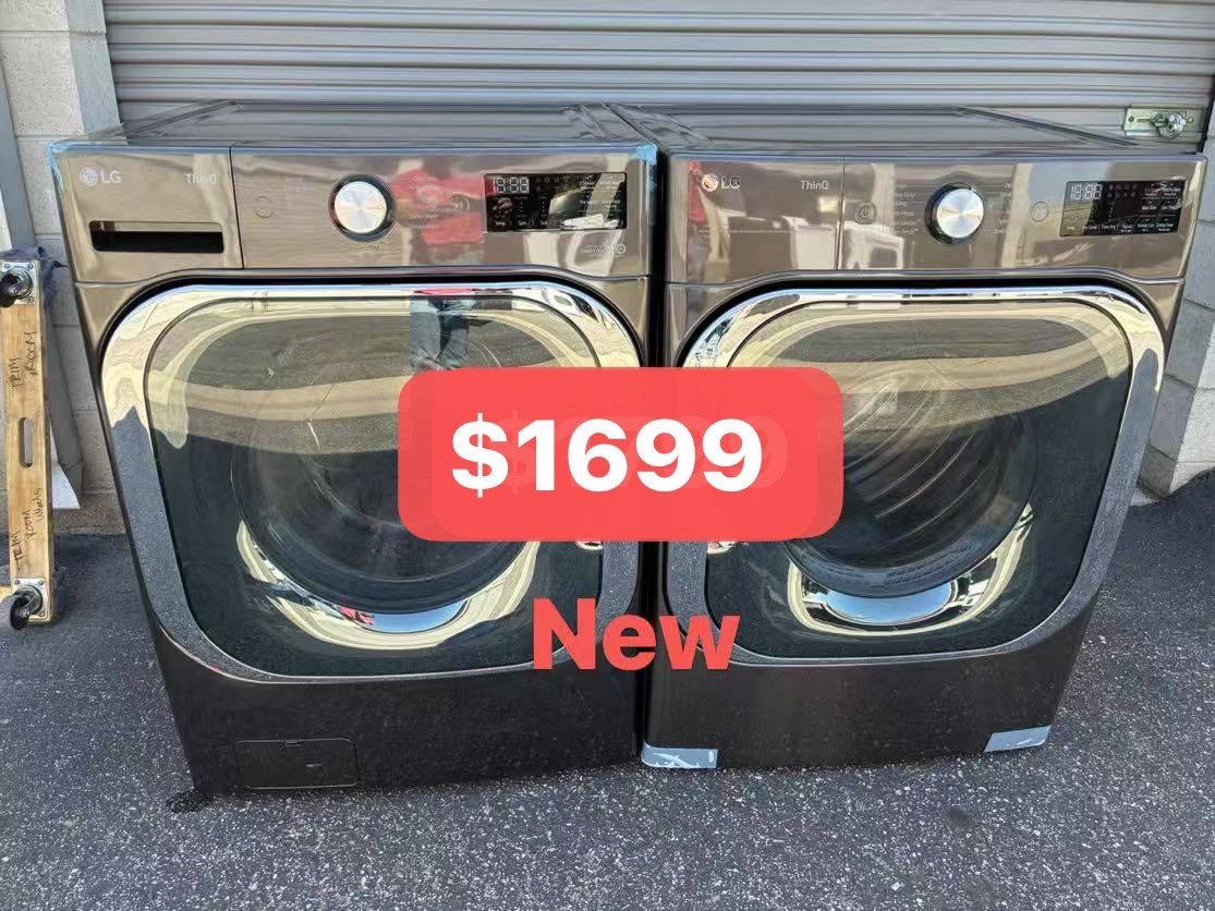 LG 5.2 cu. Ft Stackable SMART Front Load Washer in Black Steel with Steam & Turbowash Technology & LG 9.0 cu. ft. Vented SMART Stackable Gas Dryer in Black Steel with TurboSteam and Sensor Dry Technology