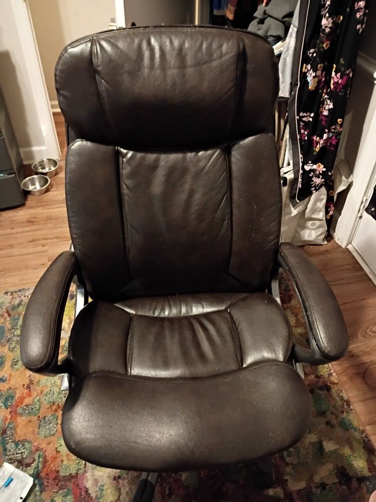 Ultimate Comfort: Style and comfort go hand-in-hand with this amazing desk chair, featuring individual coils and high-density memory foam for extra support. Ergonomic Design: Supportive headrest and lumbar zones provide all-day comfort while working or gaming. Adjustable Features: Seat-side paddle for adjustable seat height, along with tilt and tension controls for personalized reclining support. Premium Materials: Beautiful, rich bonded brown leather upholstery and durable chrome base with dual wheel casters for smooth rolling. Heavy-Duty Construction: Commercial quality supports users up to 400 lbs, ensuring durability and reliability. Stylish and Functional: Ergonomically positioned chrome arms with soft padded armrests and generously padded body pillows for ultimate comfort. Perfect Fit: Dimensions of 26.5in W x 28.5in D x 39.25in - 42.25in H, making it suitable for any room and complementing most decor.
