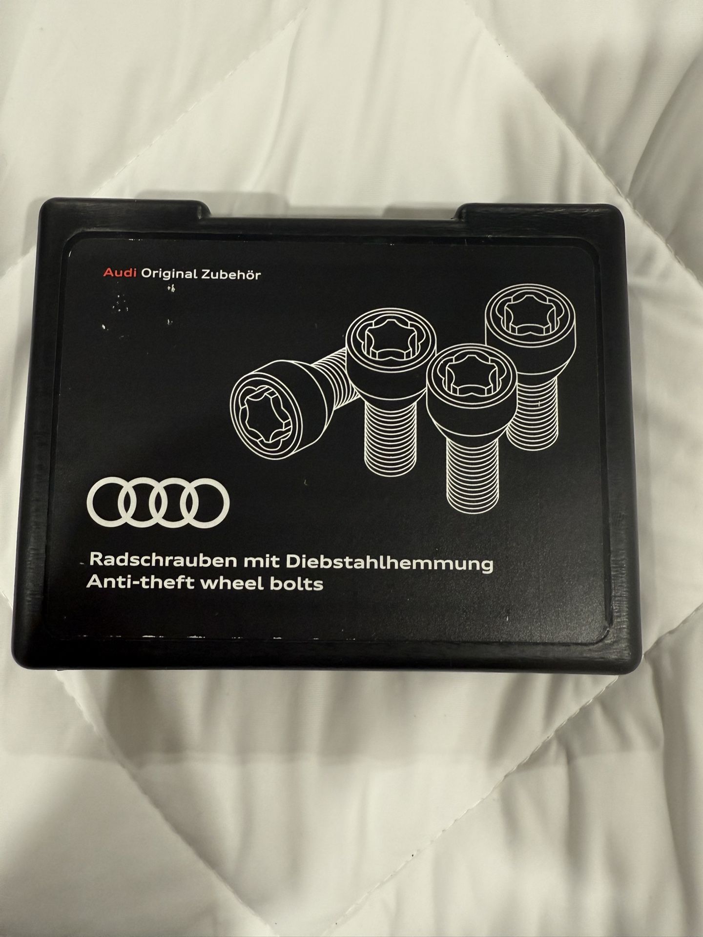 Brand new never been open in oem Audi box 150$ new. Perfect for those looking for an additional level of security for their new Audi, the Audi Wheel Locks include a freely rotating ring, preventing the wheel bolts from being opened without the proper adapter. Set includes four locks, eight bolt caps (four black and four grey), a cap tightening tool, one wheel lock adapter, and 2 code cards. Please observe maximum torque specs for alloy wheels in your Owner's Manual before installing. Impact tools are not recommended. Fits RS3 (2017 - 2026) Fits A3 2005-2026 Fits A4 1(contact info removed) Fits A5/A5 Sportback Fits A6 1(contact info removed) Fits A7 2012-2025 Fits S4 2018-2025 Fits S6 2016-2025 Fits Audi TT 2007-2015 Fits Audi Rs6 2021-2025 Fits Audi r7 2021-2025 Fits Audi etron gt 2022-2026