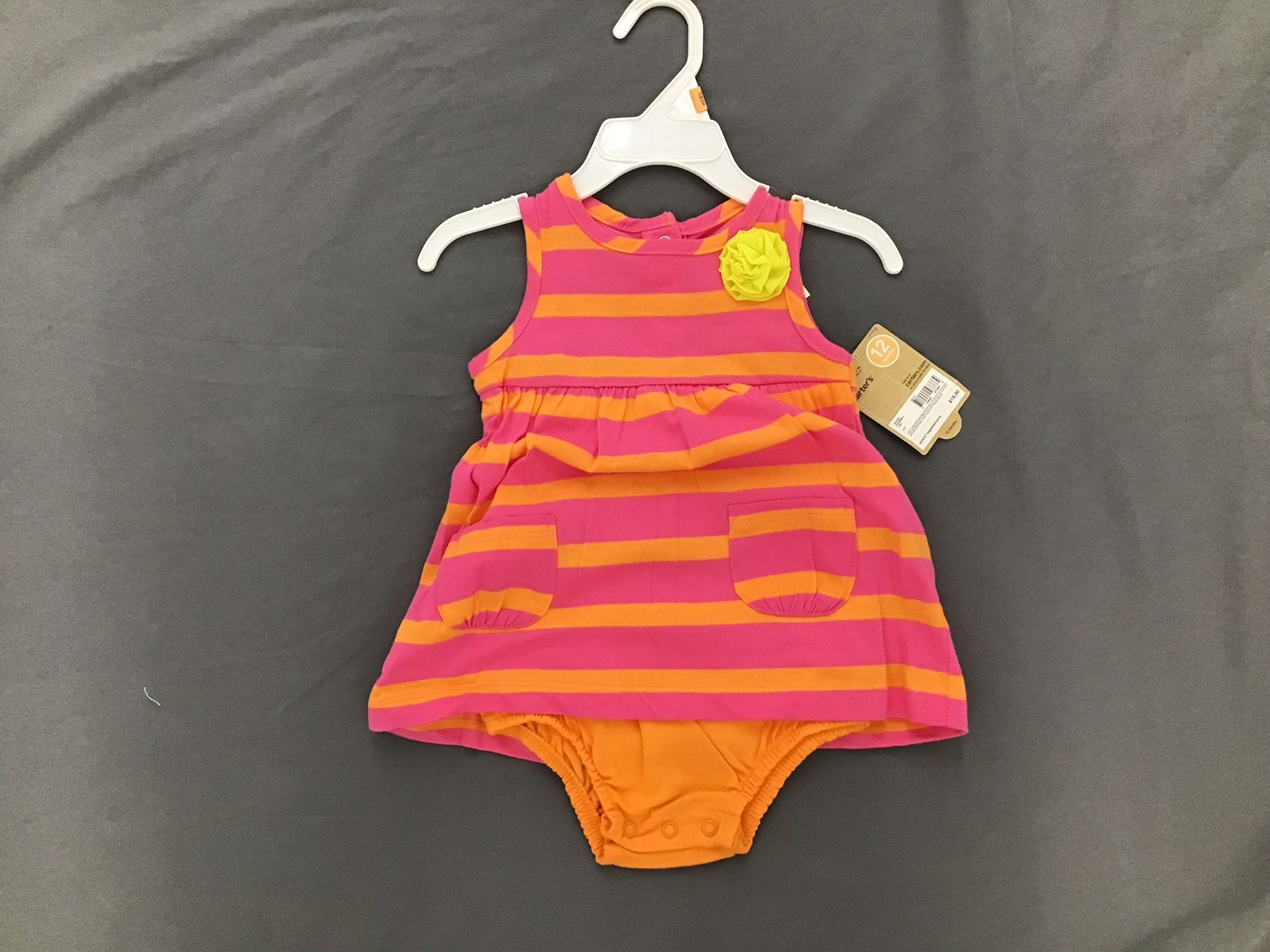 Carter’s pink orange stripe summer dress for baby 12 months
