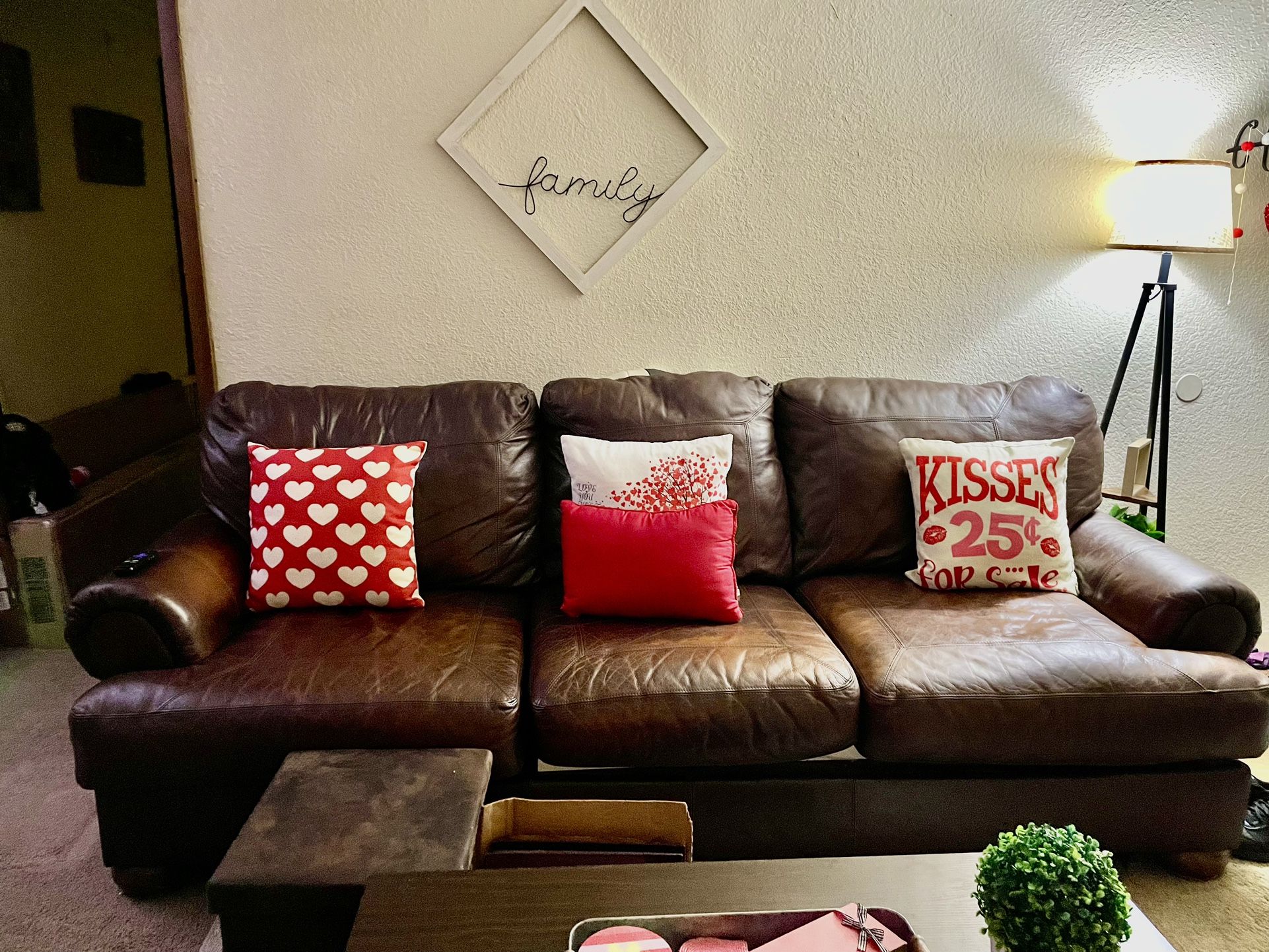 Smoke free home. There are no rips in the leather. Still in good condition. Pillows are NOT included Thanks for looking π
