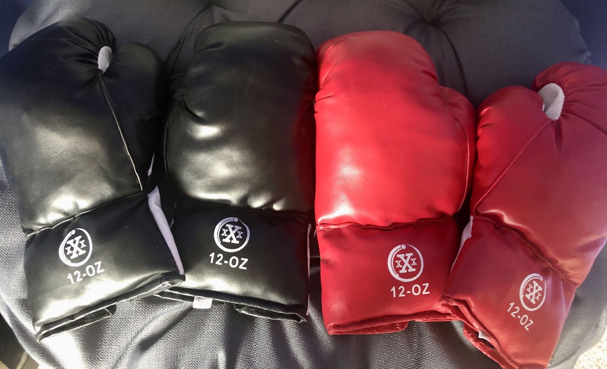 2 pairs of Triple Threat Boxing Gloves 12oz • Red and White 12oz lace up • Black and White 12oz lace up Both pairs for the price