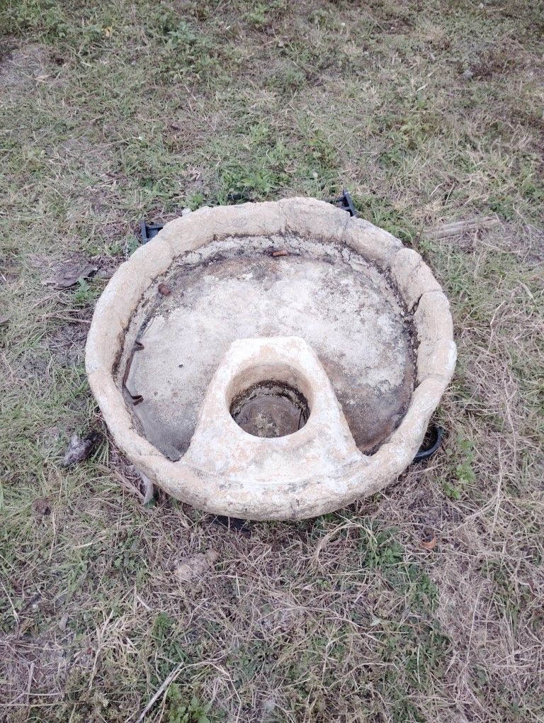 Fountain Base is in great shape. Needs pressure washed. It's not fragile, has 4 holes for tubes or mounts, definitely well made. Could also be used as a bird bath.
