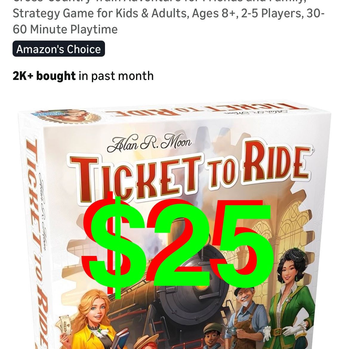 Days of Wonder - Asmodee Ticket to Ride Board Game (2025 Refresh) - A Cross-Country Train Adventure for Friends and Family, Strategy Game for Kids & Adults, Ages 8+, 2-5 Players, 30-60 Minute Playtime